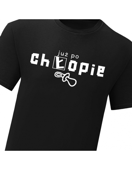 Czarny T-Shirt męski, wykonany w 100% z bawełny. Na wieczór kawalerski dla całej drużyny pierścienia, na z napisem Już po chłopie. Nadruk w technologii termotransferowej, flex.